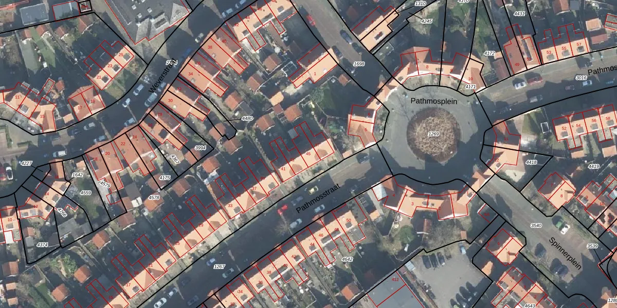 Het perceel waarop Pathmosstraat 45 staat heeft een oppervlakte van 6928 m². Dit is een zeer groot perceel. De perceeloppervlakte wordt geregistreerd door het Kadaster. Gedetailleerde informatie over de maten van dit perceel kunt u vinden in het rapport Kadastrale kaart met maatvoering van Pathmosstraat 45.