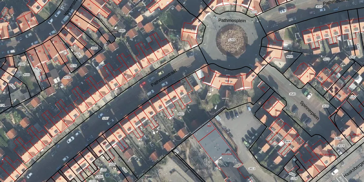 Het perceel waarop Pathmosstraat 50 staat heeft een oppervlakte van 2427 m². Dit is een zeer groot perceel. De perceeloppervlakte wordt geregistreerd door het Kadaster. Gedetailleerde informatie over de maten van dit perceel kunt u vinden in het rapport Kadastrale kaart met maatvoering van Pathmosstraat 50.