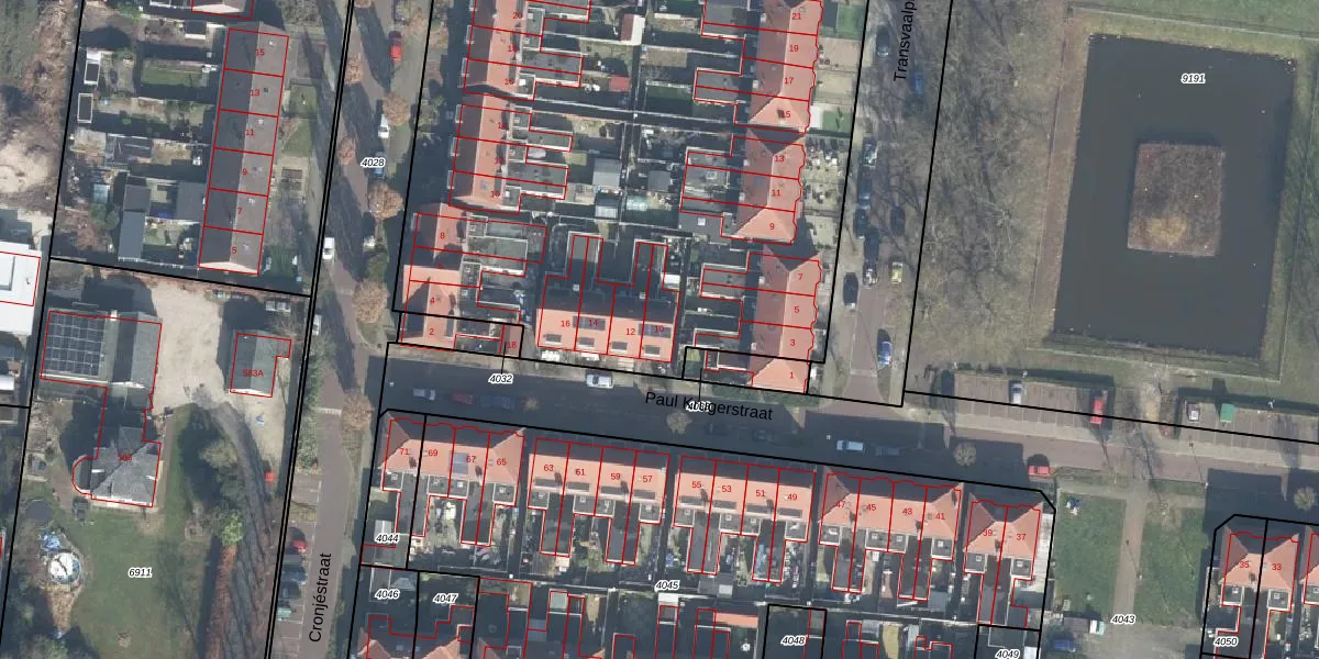 Het perceel waarop Paul Krugerstraat 10 staat heeft een oppervlakte van 7515 m². Dit is een zeer groot perceel. De perceeloppervlakte wordt geregistreerd door het Kadaster. Gedetailleerde informatie over de maten van dit perceel kunt u vinden in het rapport Kadastrale kaart met maatvoering van Paul Krugerstraat 10.