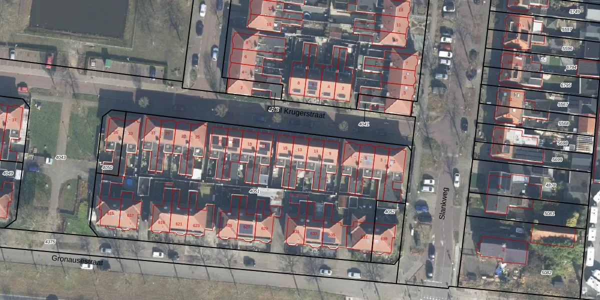 Het perceel waarop Paul Krugerstraat 13 staat heeft een oppervlakte van 3909 m². Dit is een zeer groot perceel. De perceeloppervlakte wordt geregistreerd door het Kadaster. Gedetailleerde informatie over de maten van dit perceel kunt u vinden in het rapport Kadastrale kaart met maatvoering van Paul Krugerstraat 13.