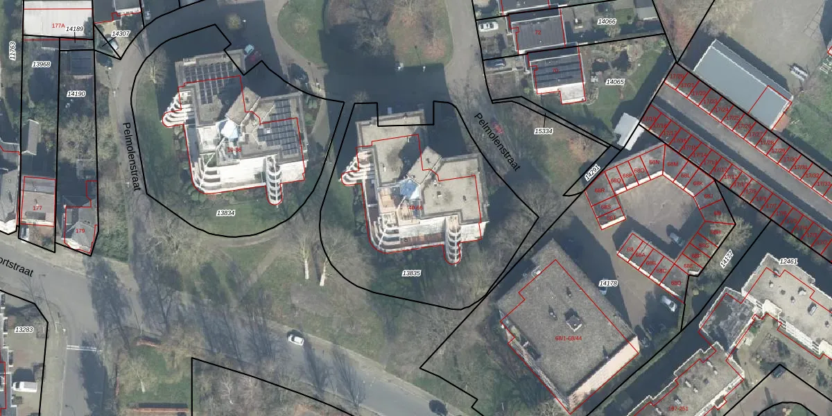 Het perceel waarop Pelmolenstraat 46 staat heeft een oppervlakte van 1783 m². Dit is een zeer groot perceel. De perceeloppervlakte wordt geregistreerd door het Kadaster. Gedetailleerde informatie over de maten van dit perceel kunt u vinden in het rapport Kadastrale kaart met maatvoering van Pelmolenstraat 46.