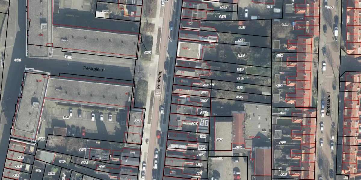 Gebruik de zoekbalk of klik op een perceel voor informatie over de adressen binnen dit perceel.