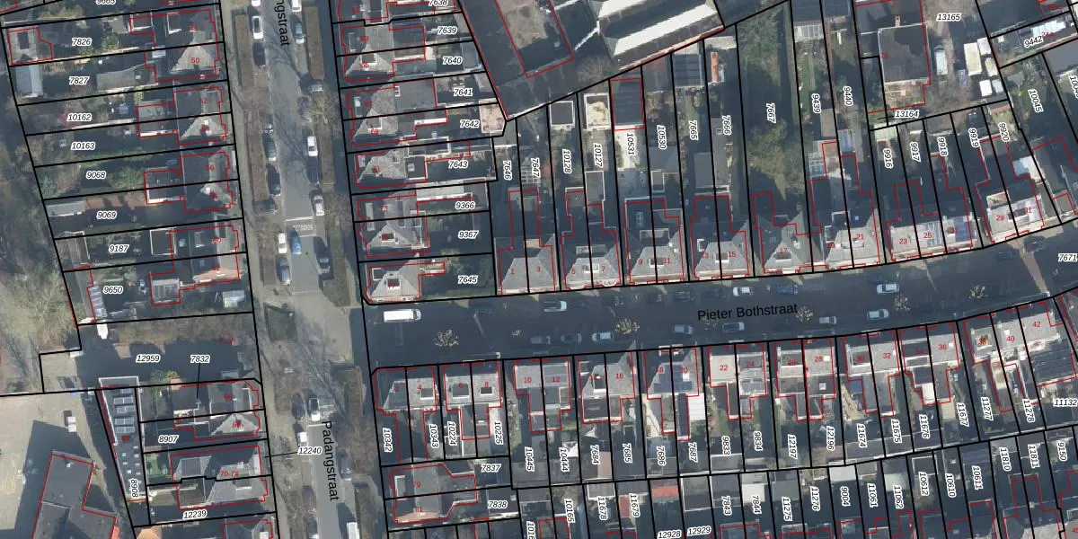 Gebruik de zoekbalk of klik op een perceel voor informatie over de adressen binnen dit perceel.