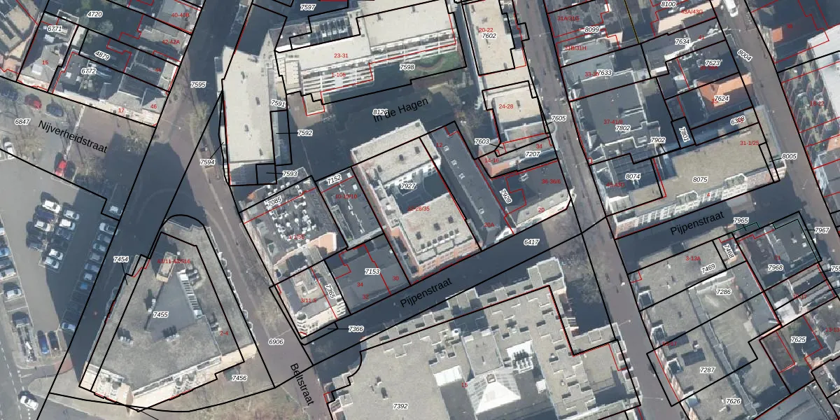 Het perceel waarop Pijpenstraat 24 staat heeft een oppervlakte van 584 m². Dit is een groot perceel. De perceeloppervlakte wordt geregistreerd door het Kadaster. Gedetailleerde informatie over de maten van dit perceel kunt u vinden in het rapport Kadastrale kaart met maatvoering van Pijpenstraat 24.