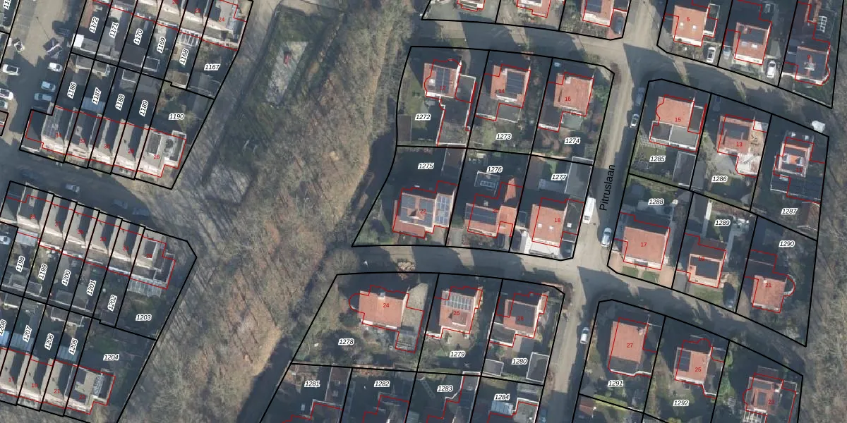 Het perceel waarop Pitruslaan 22 staat heeft een oppervlakte van 437 m². Dit is een groot perceel. De perceeloppervlakte wordt geregistreerd door het Kadaster. Gedetailleerde informatie over de maten van dit perceel kunt u vinden in het rapport Kadastrale kaart met maatvoering van Pitruslaan 22.