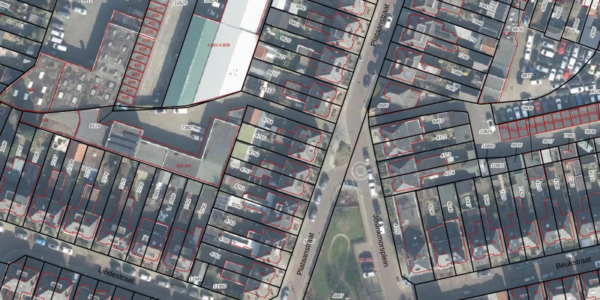 Plataanstraat 24 is gelegen op kadastraal perceel LNK00N4755. Deze kadastrale aanduiding is uniek en wordt gebruikt door het Kadaster om eigendomsrechten en andere zakelijke rechten vast te leggen. Het perceel maakt onderdeel uit van de kadastrale gemeente Lonneker.