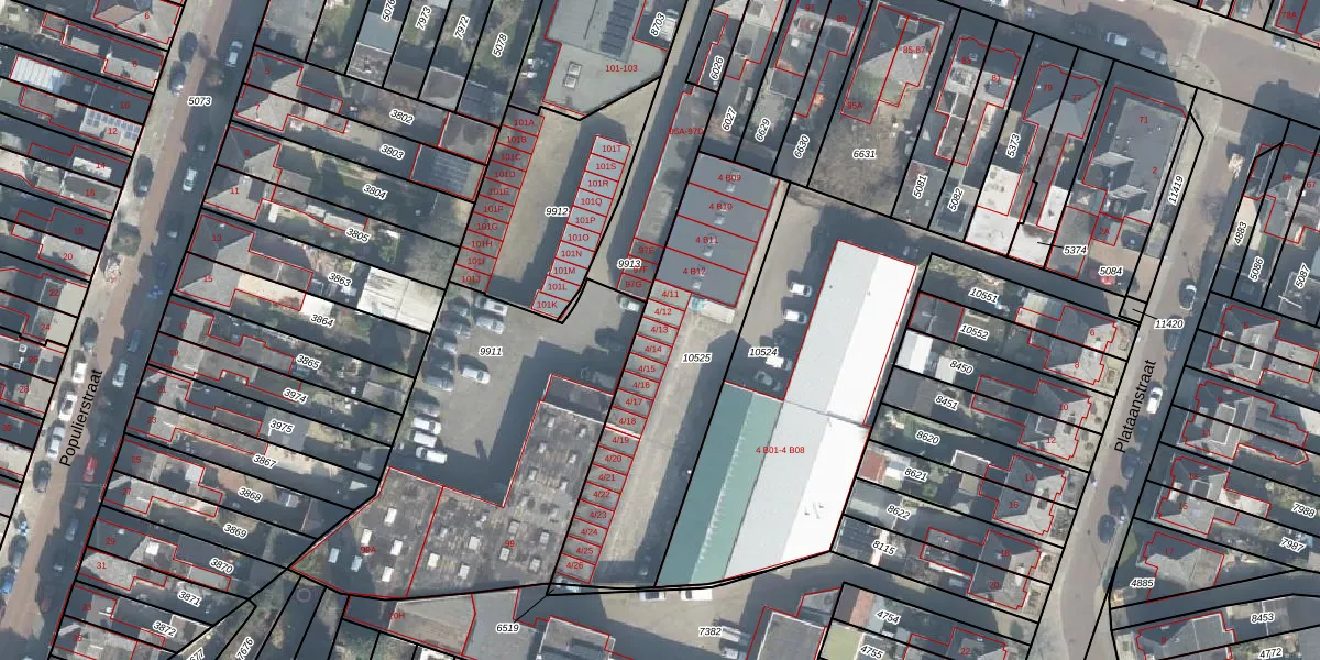 Plataanstraat 4-13 is gelegen op kadastraal perceel LNK00N10525. Deze kadastrale aanduiding is uniek en wordt gebruikt door het Kadaster om eigendomsrechten en andere zakelijke rechten vast te leggen. Het perceel maakt onderdeel uit van de kadastrale gemeente Lonneker.