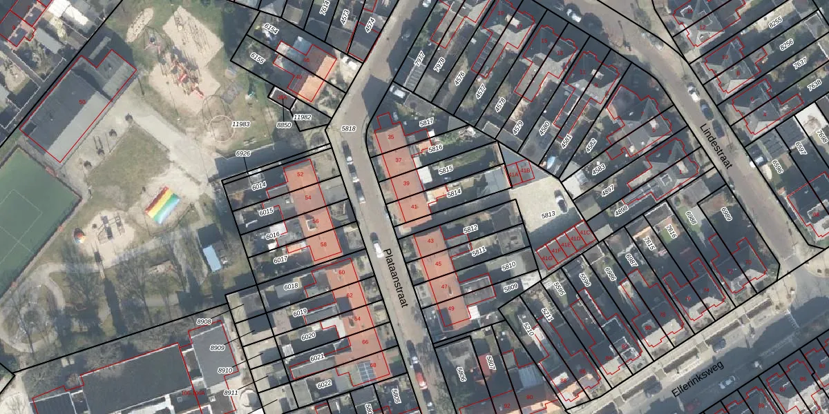 Plataanstraat 41 is gelegen op kadastraal perceel LNK00N5814. Deze kadastrale aanduiding is uniek en wordt gebruikt door het Kadaster om eigendomsrechten en andere zakelijke rechten vast te leggen. Het perceel maakt onderdeel uit van de kadastrale gemeente Lonneker.