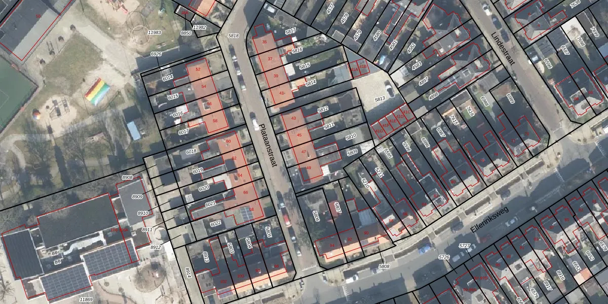 Plataanstraat 47 is gelegen op kadastraal perceel LNK00N5810. Deze kadastrale aanduiding is uniek en wordt gebruikt door het Kadaster om eigendomsrechten en andere zakelijke rechten vast te leggen. Het perceel maakt onderdeel uit van de kadastrale gemeente Lonneker.
