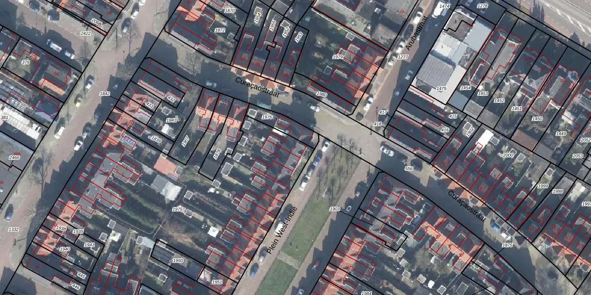 Het perceel waarop Plein West-Indië 4 staat heeft een oppervlakte van 3490 m². Dit is een zeer groot perceel. De perceeloppervlakte wordt geregistreerd door het Kadaster. Gedetailleerde informatie over de maten van dit perceel kunt u vinden in het rapport Kadastrale kaart met maatvoering van Plein West-Indië 4.