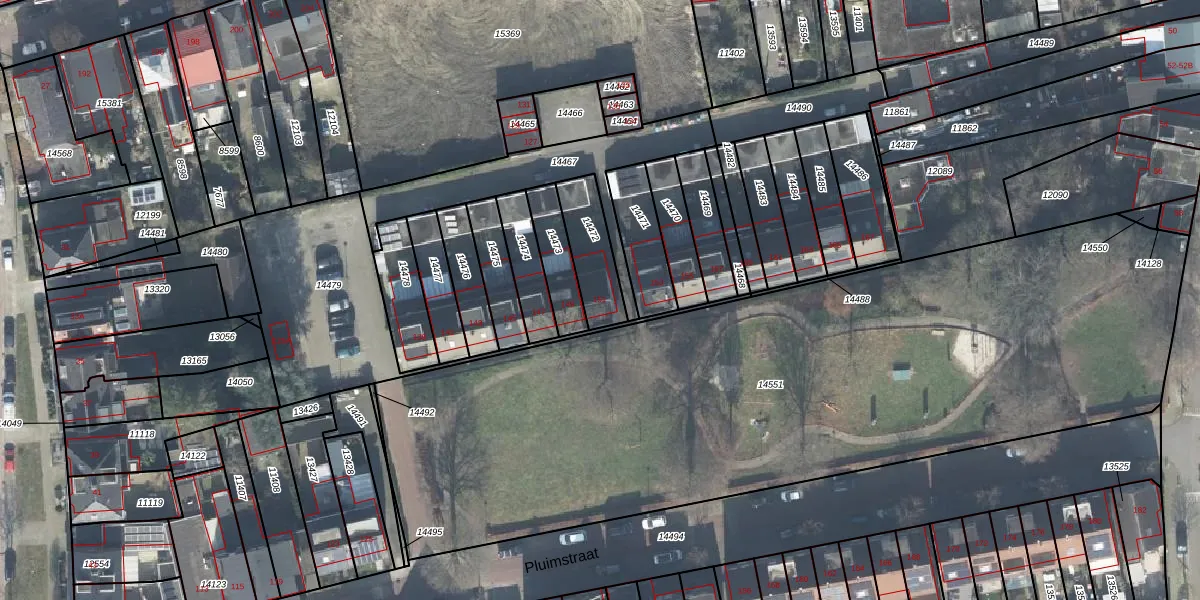 Het perceel waarop Pluimstraat 151 staat heeft een oppervlakte van 174 m². Dit is een middelgroot perceel. De perceeloppervlakte wordt geregistreerd door het Kadaster. Gedetailleerde informatie over de maten van dit perceel kunt u vinden in het rapport Kadastrale kaart met maatvoering van Pluimstraat 151.
