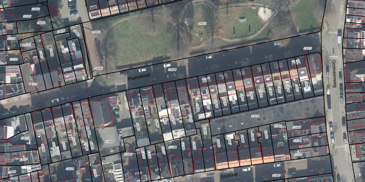 Pluimstraat 154 is gelegen op kadastraal perceel ESD00D13319. Deze kadastrale aanduiding is uniek en wordt gebruikt door het Kadaster om eigendomsrechten en andere zakelijke rechten vast te leggen. Het perceel maakt onderdeel uit van de kadastrale gemeente Enschede.