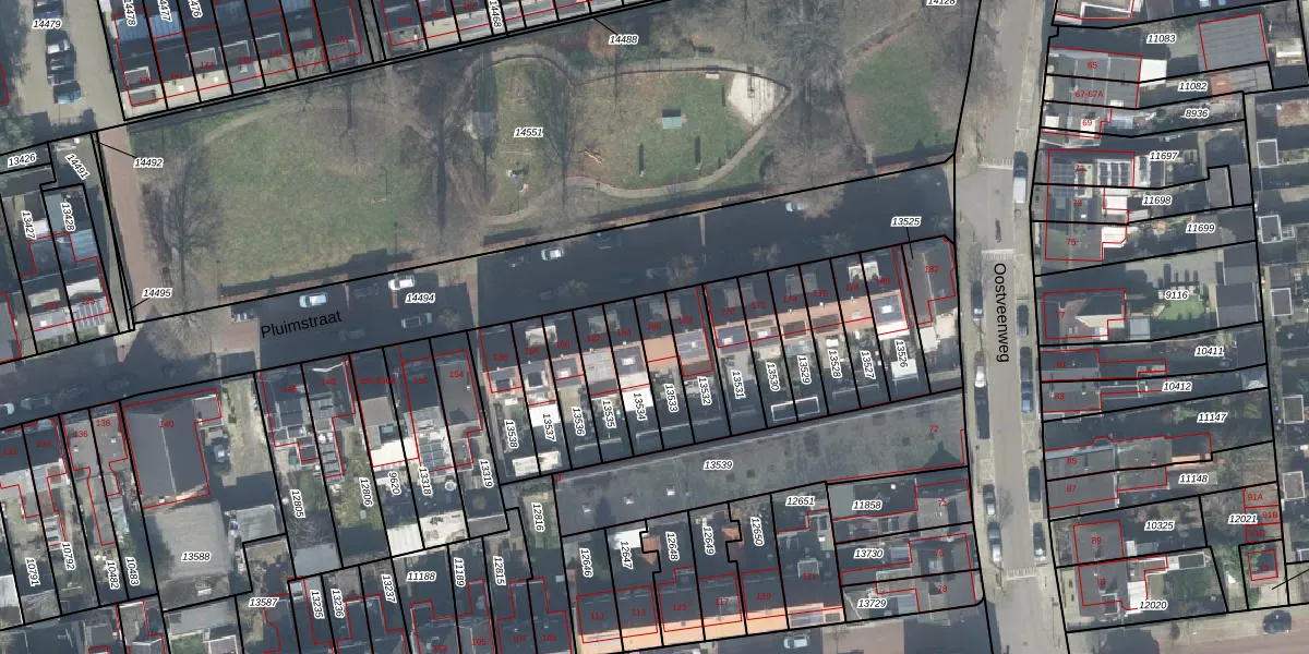 Het perceel waarop Pluimstraat 166 staat heeft een oppervlakte van 115 m². Dit is een middelgroot perceel. De perceeloppervlakte wordt geregistreerd door het Kadaster. Gedetailleerde informatie over de maten van dit perceel kunt u vinden in het rapport Kadastrale kaart met maatvoering van Pluimstraat 166.