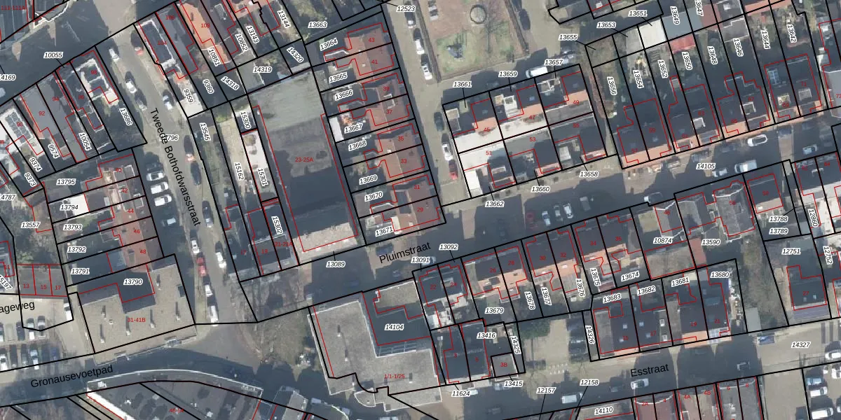 Gebruik de zoekbalk of klik op een perceel voor informatie over de adressen binnen dit perceel.