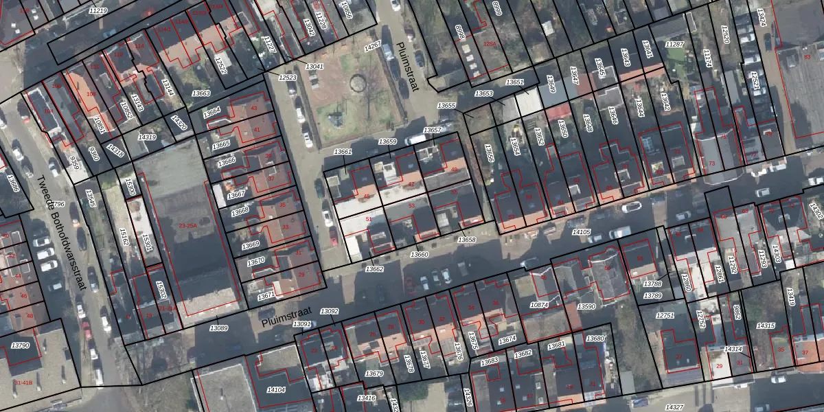 Het perceel waarop Pluimstraat 53 staat heeft een oppervlakte van 124 m². Dit is een middelgroot perceel. De perceeloppervlakte wordt geregistreerd door het Kadaster. Gedetailleerde informatie over de maten van dit perceel kunt u vinden in het rapport Kadastrale kaart met maatvoering van Pluimstraat 53.