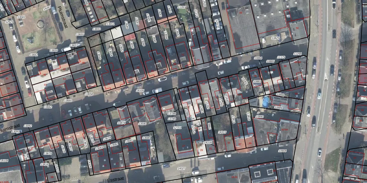 Gebruik de zoekbalk of klik op een perceel voor informatie over de adressen binnen dit perceel.