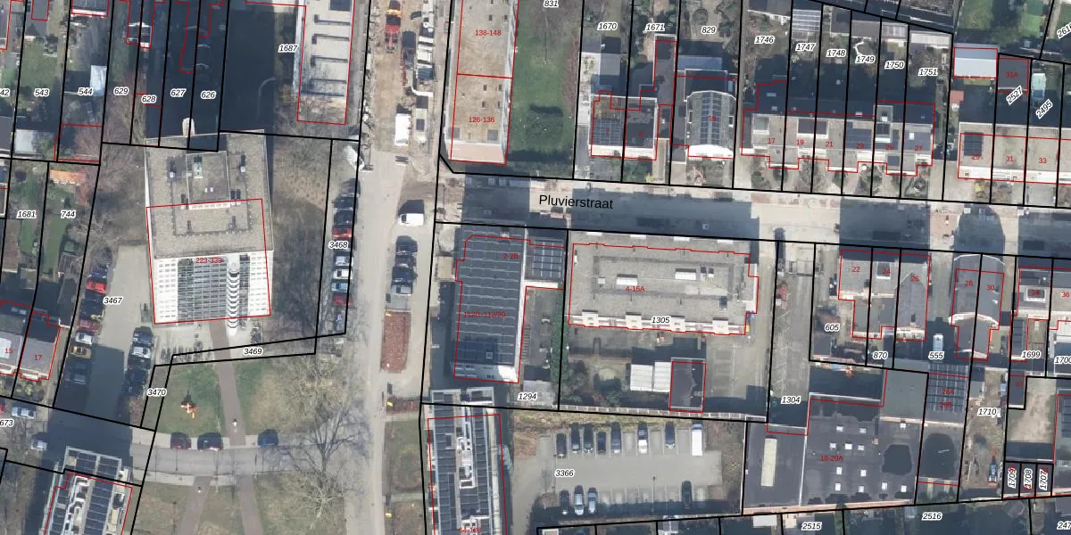 Pluvierstraat 2-B is gelegen op kadastraal perceel LNK00R1294. Deze kadastrale aanduiding is uniek en wordt gebruikt door het Kadaster om eigendomsrechten en andere zakelijke rechten vast te leggen. Het perceel maakt onderdeel uit van de kadastrale gemeente Lonneker.