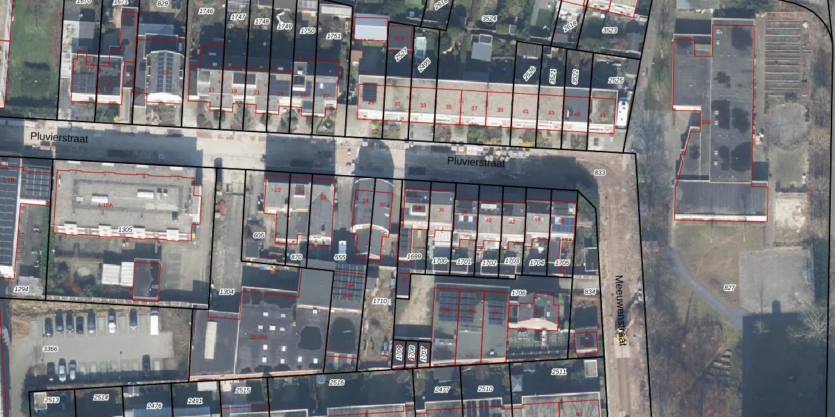 Pluvierstraat 34 is gelegen op kadastraal perceel LNK00R1699. Deze kadastrale aanduiding is uniek en wordt gebruikt door het Kadaster om eigendomsrechten en andere zakelijke rechten vast te leggen. Het perceel maakt onderdeel uit van de kadastrale gemeente Lonneker.
