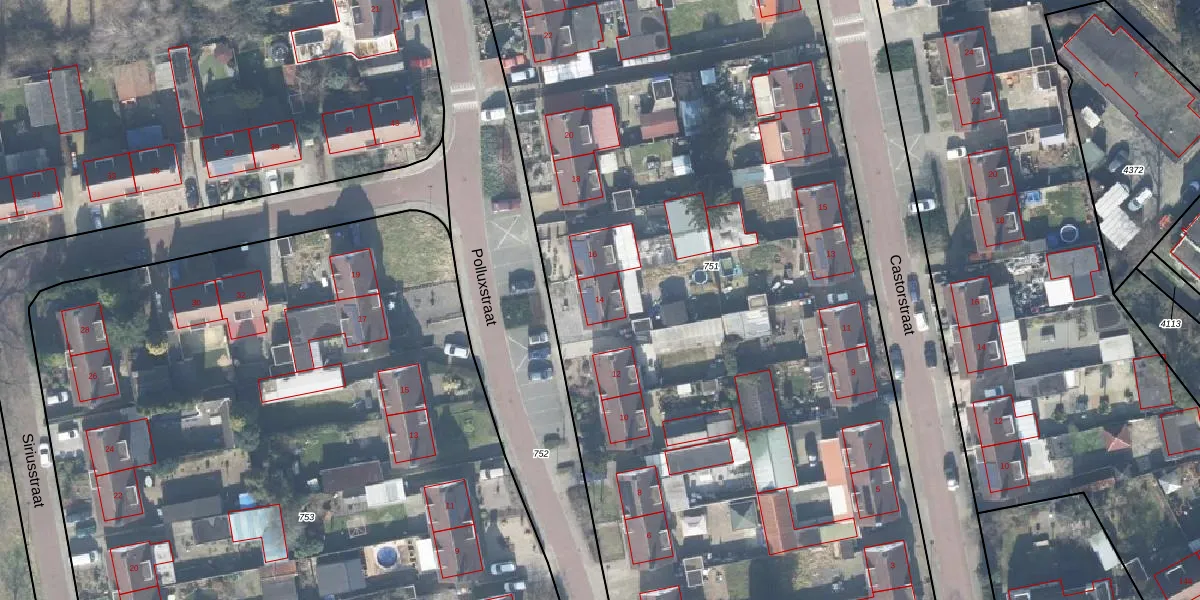 Polluxstraat 14 is gelegen op kadastraal perceel LNK00S751. Deze kadastrale aanduiding is uniek en wordt gebruikt door het Kadaster om eigendomsrechten en andere zakelijke rechten vast te leggen. Het perceel maakt onderdeel uit van de kadastrale gemeente Lonneker.