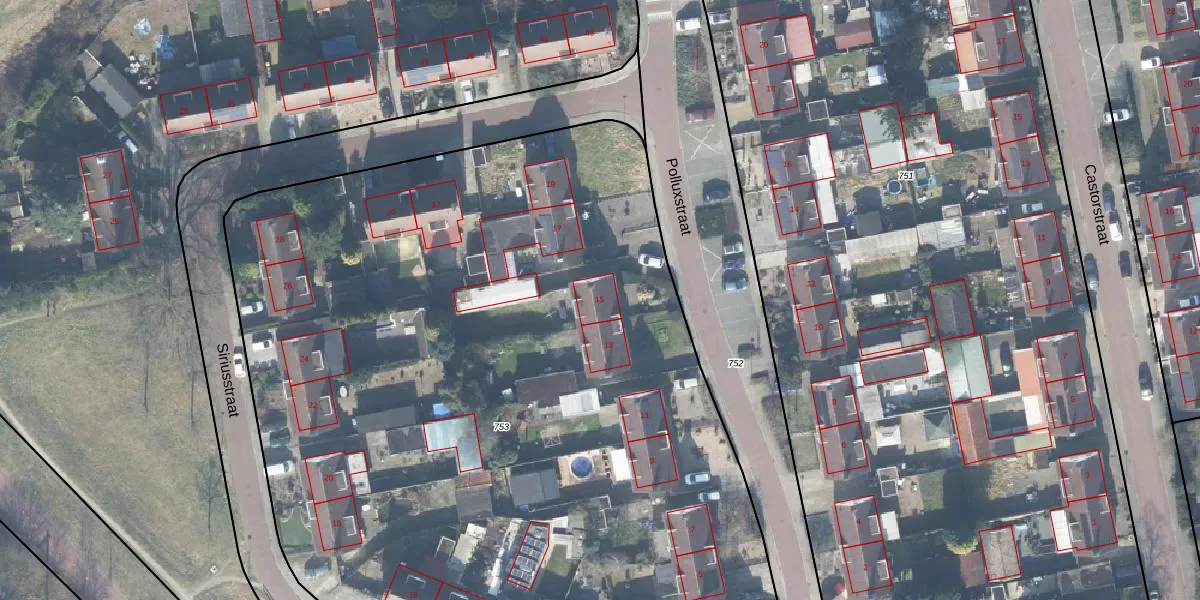 Polluxstraat 15 is gelegen op kadastraal perceel LNK00S753. Deze kadastrale aanduiding is uniek en wordt gebruikt door het Kadaster om eigendomsrechten en andere zakelijke rechten vast te leggen. Het perceel maakt onderdeel uit van de kadastrale gemeente Lonneker.