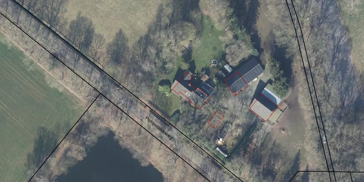 Het perceel waarop Pompstationweg 12 staat heeft een oppervlakte van 4,7 ha. Dit is een zeer groot perceel. De perceeloppervlakte wordt geregistreerd door het Kadaster. Gedetailleerde informatie over de maten van dit perceel kunt u vinden in het rapport Kadastrale kaart met maatvoering van Pompstationweg 12.