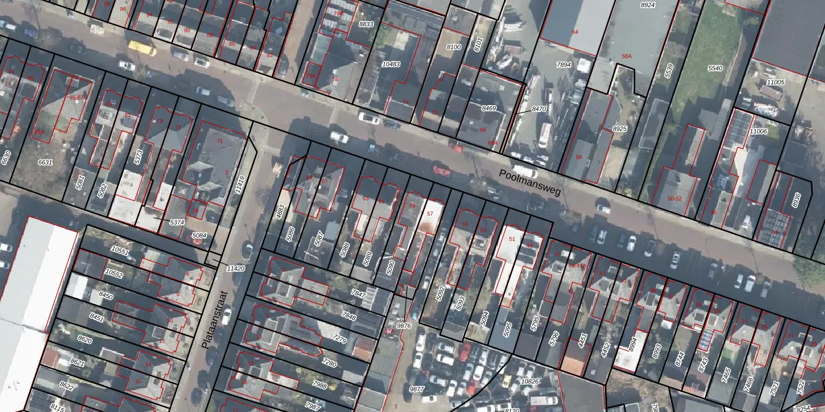 Het perceel waarop Poolmansweg 59 staat heeft een oppervlakte van 168 m². Dit is een middelgroot perceel. De perceeloppervlakte wordt geregistreerd door het Kadaster. Gedetailleerde informatie over de maten van dit perceel kunt u vinden in het rapport Kadastrale kaart met maatvoering van Poolmansweg 59.
