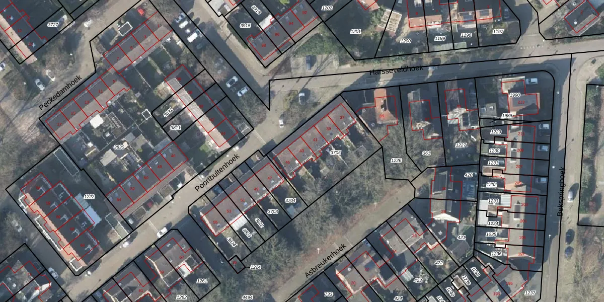 Het perceel waarop Poortbultenhoek 43 staat heeft een oppervlakte van 702 m². Dit is een groot perceel. De perceeloppervlakte wordt geregistreerd door het Kadaster. Gedetailleerde informatie over de maten van dit perceel kunt u vinden in het rapport Kadastrale kaart met maatvoering van Poortbultenhoek 43.