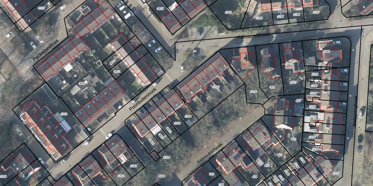Het perceel waarop Poortbultenhoek 45 staat heeft een oppervlakte van 702 m². Dit is een groot perceel. De perceeloppervlakte wordt geregistreerd door het Kadaster. Gedetailleerde informatie over de maten van dit perceel kunt u vinden in het rapport Kadastrale kaart met maatvoering van Poortbultenhoek 45.