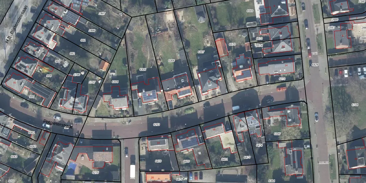 Het perceel waarop Potgieterstraat 15 staat heeft een oppervlakte van 880 m². Dit is een groot perceel. De perceeloppervlakte wordt geregistreerd door het Kadaster. Gedetailleerde informatie over de maten van dit perceel kunt u vinden in het rapport Kadastrale kaart met maatvoering van Potgieterstraat 15.