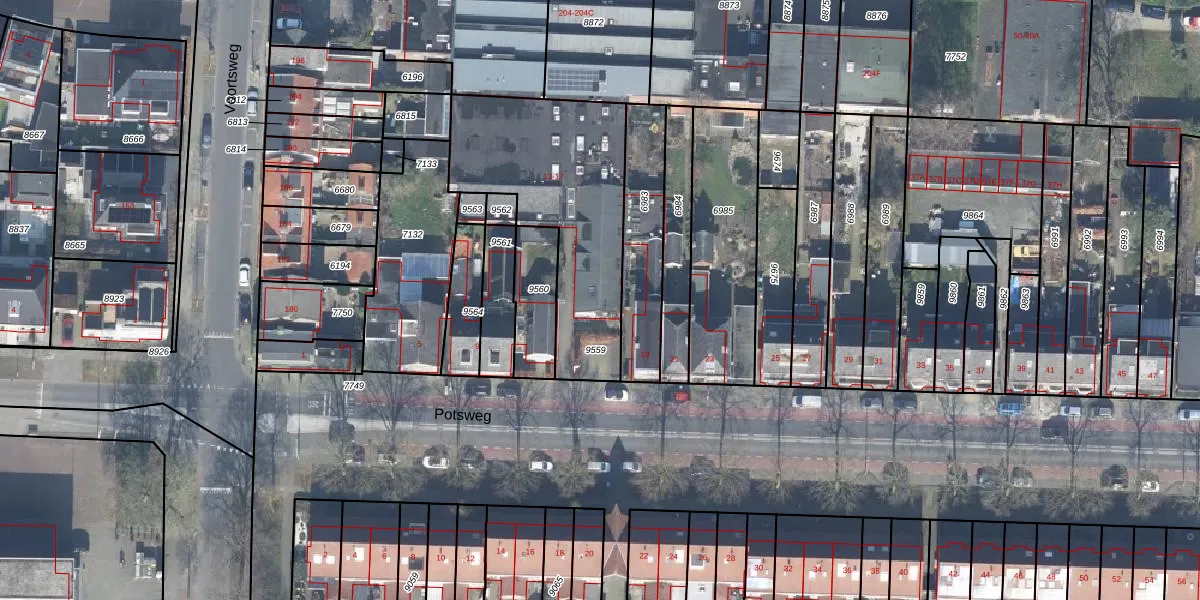 Het perceel waarop Potsweg 17 staat heeft een oppervlakte van 836 m². Dit is een groot perceel. De perceeloppervlakte wordt geregistreerd door het Kadaster. Gedetailleerde informatie over de maten van dit perceel kunt u vinden in het rapport Kadastrale kaart met maatvoering van Potsweg 17.