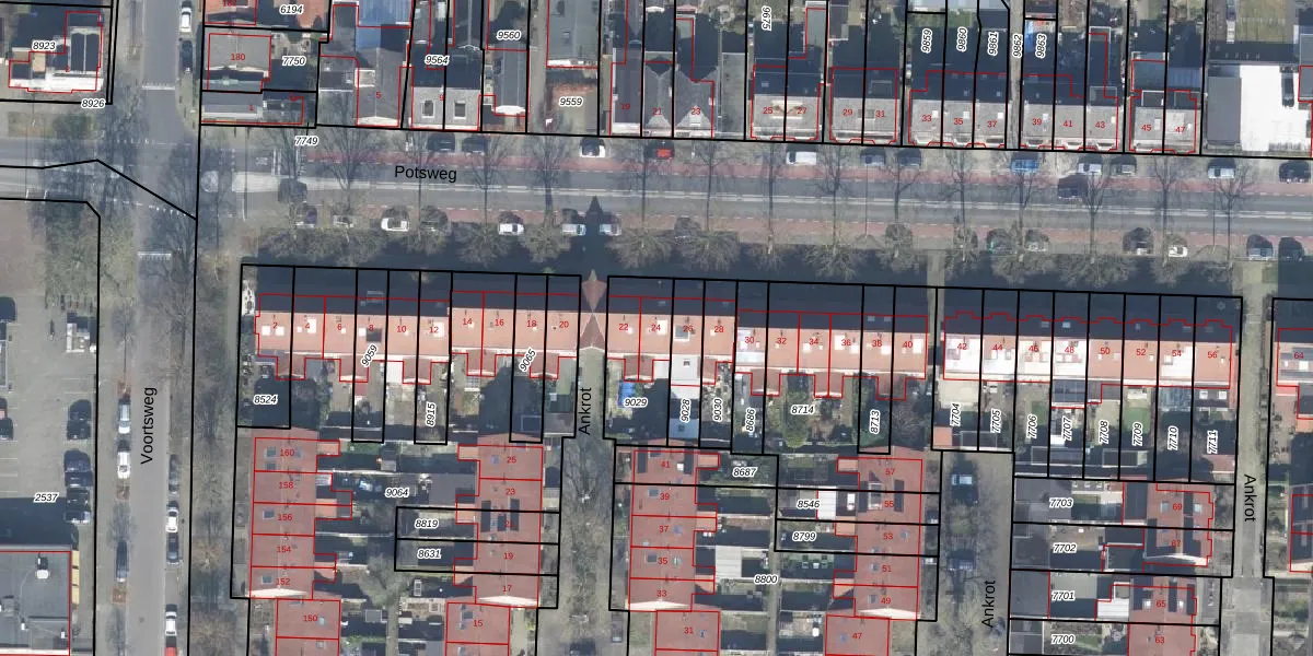 Het perceel waarop Potsweg 24 staat heeft een oppervlakte van 252 m². Dit is een middelgroot perceel. De perceeloppervlakte wordt geregistreerd door het Kadaster. Gedetailleerde informatie over de maten van dit perceel kunt u vinden in het rapport Kadastrale kaart met maatvoering van Potsweg 24.