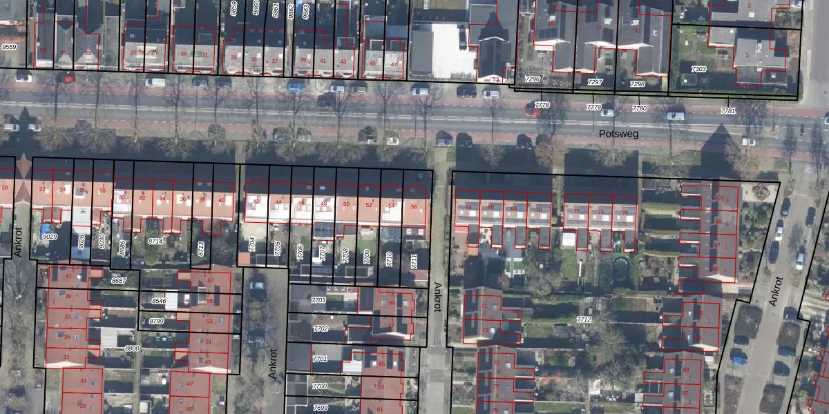 Het perceel waarop Potsweg 56 staat heeft een oppervlakte van 200 m². Dit is een middelgroot perceel. De perceeloppervlakte wordt geregistreerd door het Kadaster. Gedetailleerde informatie over de maten van dit perceel kunt u vinden in het rapport Kadastrale kaart met maatvoering van Potsweg 56.