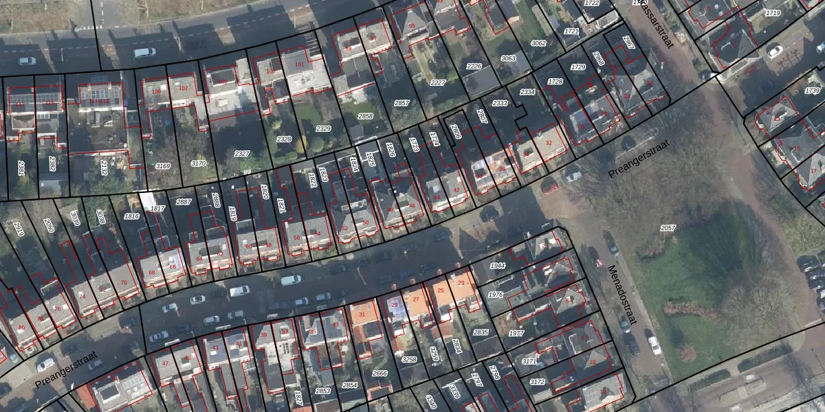 Gebruik de zoekbalk of klik op een perceel voor informatie over de adressen binnen dit perceel.