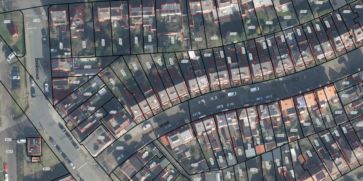 Gebruik de zoekbalk of klik op een perceel voor informatie over de adressen binnen dit perceel.