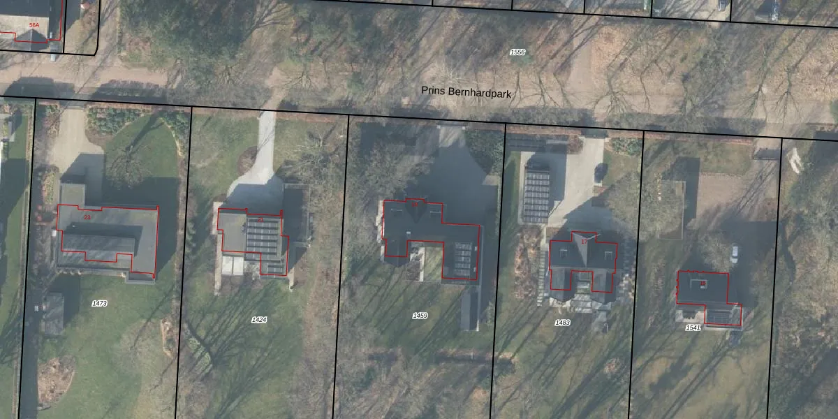 Het perceel waarop Prins Bernhardpark 19 staat heeft een oppervlakte van 3751 m². Dit is een zeer groot perceel. De perceeloppervlakte wordt geregistreerd door het Kadaster. Gedetailleerde informatie over de maten van dit perceel kunt u vinden in het rapport Kadastrale kaart met maatvoering van Prins Bernhardpark 19.