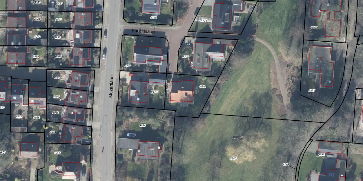 Puccinilaan 4 is gelegen op kadastraal perceel LNK00B4844. Deze kadastrale aanduiding is uniek en wordt gebruikt door het Kadaster om eigendomsrechten en andere zakelijke rechten vast te leggen. Het perceel maakt onderdeel uit van de kadastrale gemeente Lonneker.