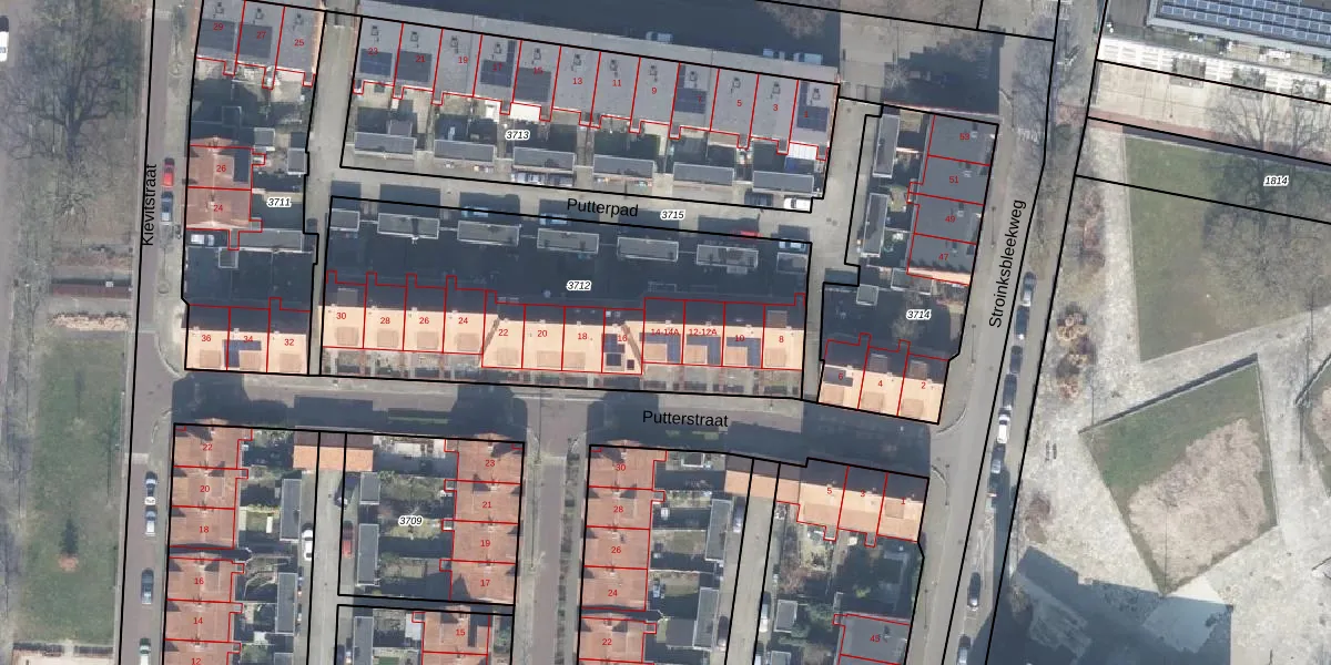 Het perceel waarop Putterstraat 14 staat heeft een oppervlakte van 1830 m². Dit is een zeer groot perceel. De perceeloppervlakte wordt geregistreerd door het Kadaster. Gedetailleerde informatie over de maten van dit perceel kunt u vinden in het rapport Kadastrale kaart met maatvoering van Putterstraat 14.