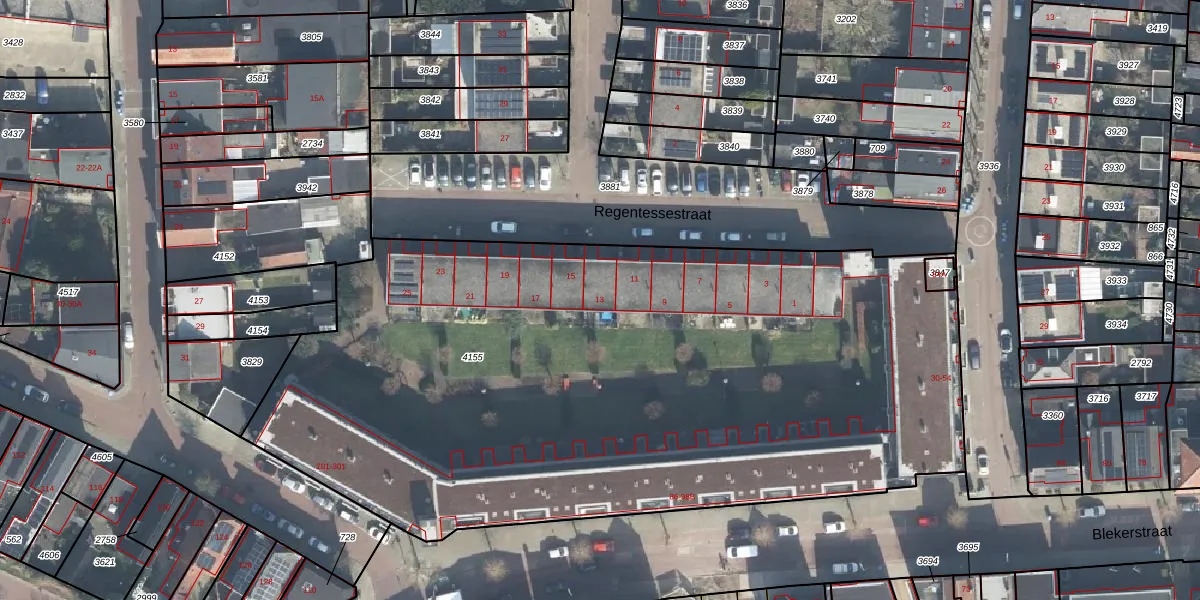 Het perceel waarop Regentessestraat 13 staat heeft een oppervlakte van 4776 m². Dit is een zeer groot perceel. De perceeloppervlakte wordt geregistreerd door het Kadaster. Gedetailleerde informatie over de maten van dit perceel kunt u vinden in het rapport Kadastrale kaart met maatvoering van Regentessestraat 13.