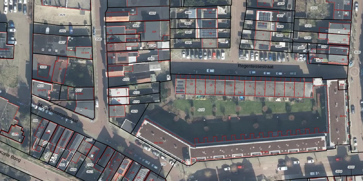 Het perceel waarop Regentessestraat 25 staat heeft een oppervlakte van 4776 m². Dit is een zeer groot perceel. De perceeloppervlakte wordt geregistreerd door het Kadaster. Gedetailleerde informatie over de maten van dit perceel kunt u vinden in het rapport Kadastrale kaart met maatvoering van Regentessestraat 25.