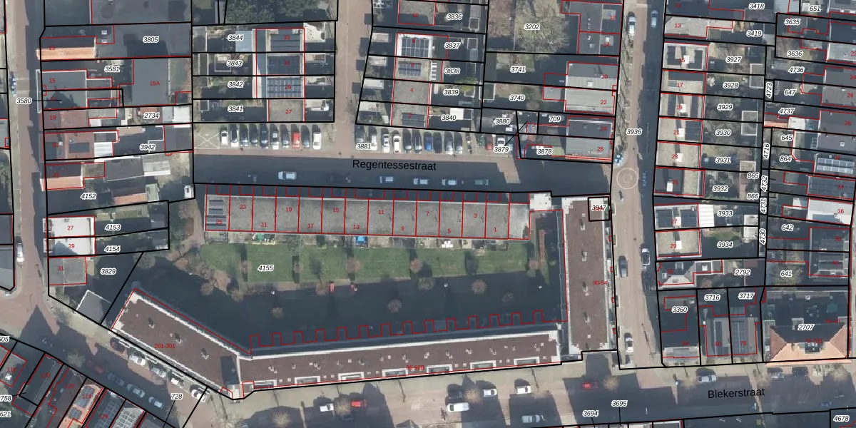 Het perceel waarop Regentessestraat 7 staat heeft een oppervlakte van 4776 m². Dit is een zeer groot perceel. De perceeloppervlakte wordt geregistreerd door het Kadaster. Gedetailleerde informatie over de maten van dit perceel kunt u vinden in het rapport Kadastrale kaart met maatvoering van Regentessestraat 7.