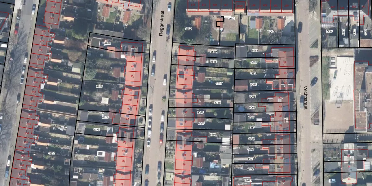 Het perceel waarop Reggestraat 40 staat heeft een oppervlakte van 586 m². Dit is een groot perceel. De perceeloppervlakte wordt geregistreerd door het Kadaster. Gedetailleerde informatie over de maten van dit perceel kunt u vinden in het rapport Kadastrale kaart met maatvoering van Reggestraat 40.