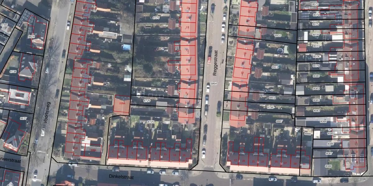 Reggestraat 5 is gelegen op kadastraal perceel LNK00C8775. Deze kadastrale aanduiding is uniek en wordt gebruikt door het Kadaster om eigendomsrechten en andere zakelijke rechten vast te leggen. Het perceel maakt onderdeel uit van de kadastrale gemeente Lonneker.