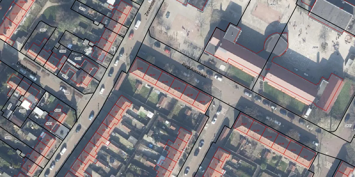 Het perceel waarop Regulusstraat 37 staat heeft een oppervlakte van 7990 m². Dit is een zeer groot perceel. De perceeloppervlakte wordt geregistreerd door het Kadaster. Gedetailleerde informatie over de maten van dit perceel kunt u vinden in het rapport Kadastrale kaart met maatvoering van Regulusstraat 37.