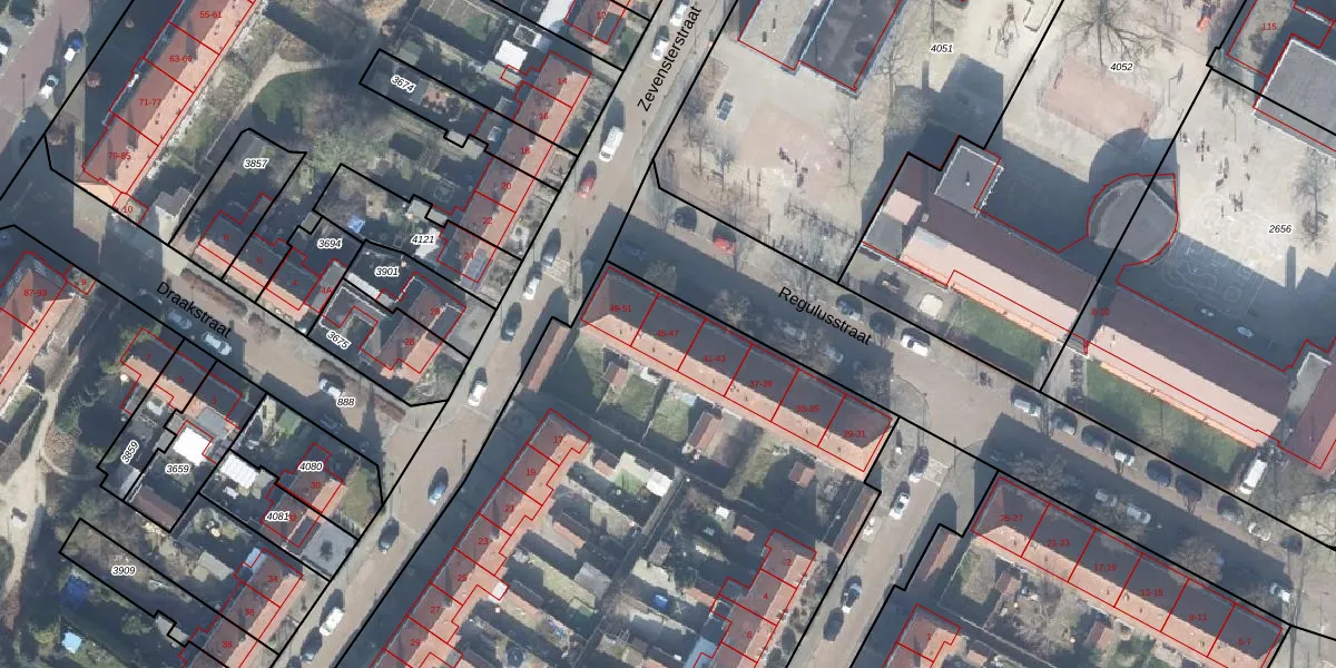 Het perceel waarop Regulusstraat 47 staat heeft een oppervlakte van 7990 m². Dit is een zeer groot perceel. De perceeloppervlakte wordt geregistreerd door het Kadaster. Gedetailleerde informatie over de maten van dit perceel kunt u vinden in het rapport Kadastrale kaart met maatvoering van Regulusstraat 47.