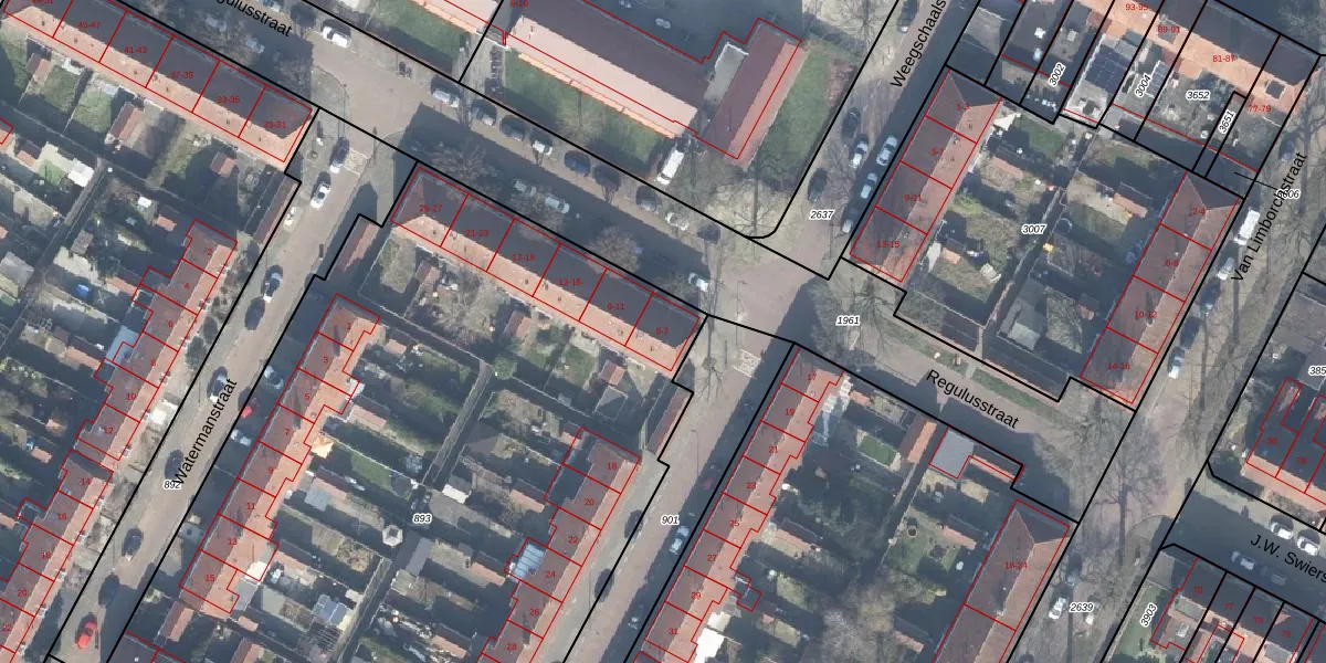Het perceel waarop Regulusstraat 7 staat heeft een oppervlakte van 5430 m². Dit is een zeer groot perceel. De perceeloppervlakte wordt geregistreerd door het Kadaster. Gedetailleerde informatie over de maten van dit perceel kunt u vinden in het rapport Kadastrale kaart met maatvoering van Regulusstraat 7.