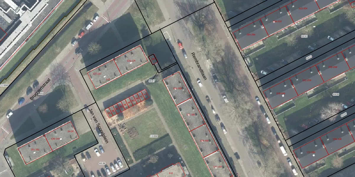 Het perceel waarop Rembrandtlaan 189 staat heeft een oppervlakte van 8679 m². Dit is een zeer groot perceel. De perceeloppervlakte wordt geregistreerd door het Kadaster. Gedetailleerde informatie over de maten van dit perceel kunt u vinden in het rapport Kadastrale kaart met maatvoering van Rembrandtlaan 189.