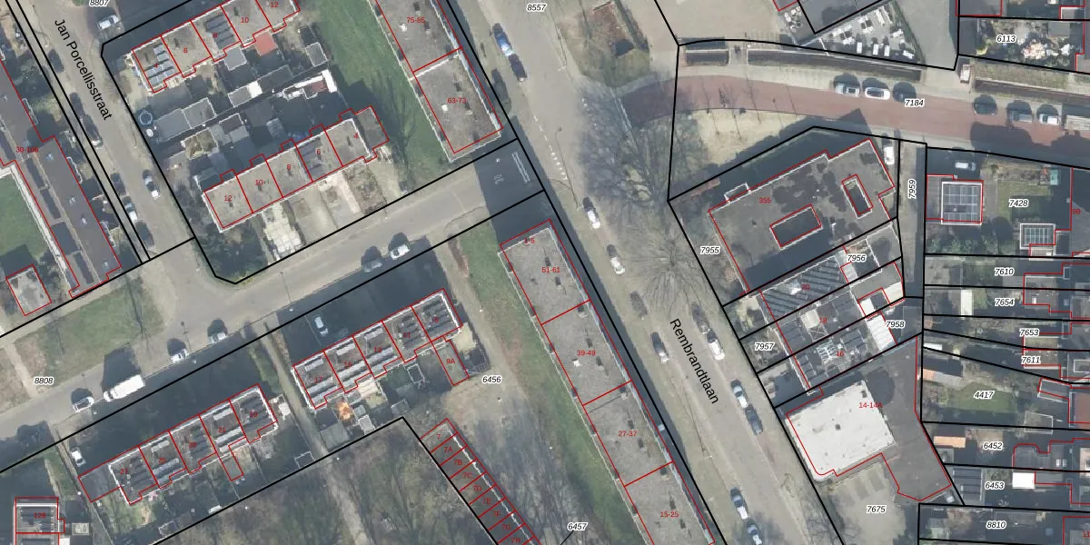 Rembrandtlaan 55 is gelegen op kadastraal perceel LNK00N6456. Deze kadastrale aanduiding is uniek en wordt gebruikt door het Kadaster om eigendomsrechten en andere zakelijke rechten vast te leggen. Het perceel maakt onderdeel uit van de kadastrale gemeente Lonneker.