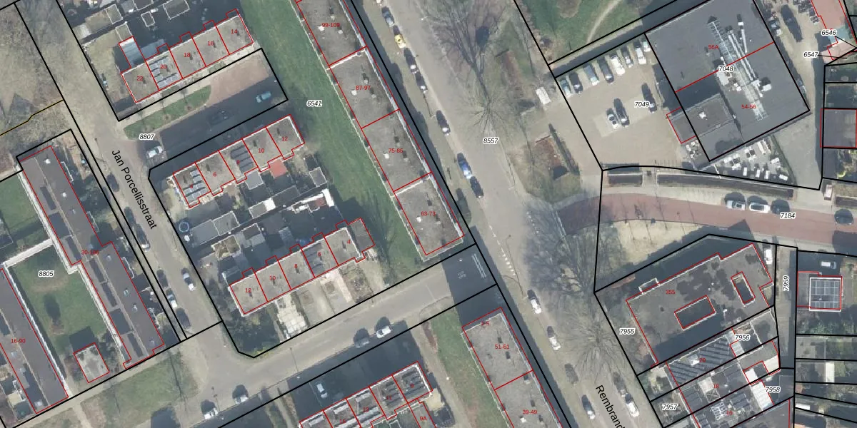 Het perceel waarop Rembrandtlaan 67 staat heeft een oppervlakte van 5929 m². Dit is een zeer groot perceel. De perceeloppervlakte wordt geregistreerd door het Kadaster. Gedetailleerde informatie over de maten van dit perceel kunt u vinden in het rapport Kadastrale kaart met maatvoering van Rembrandtlaan 67.