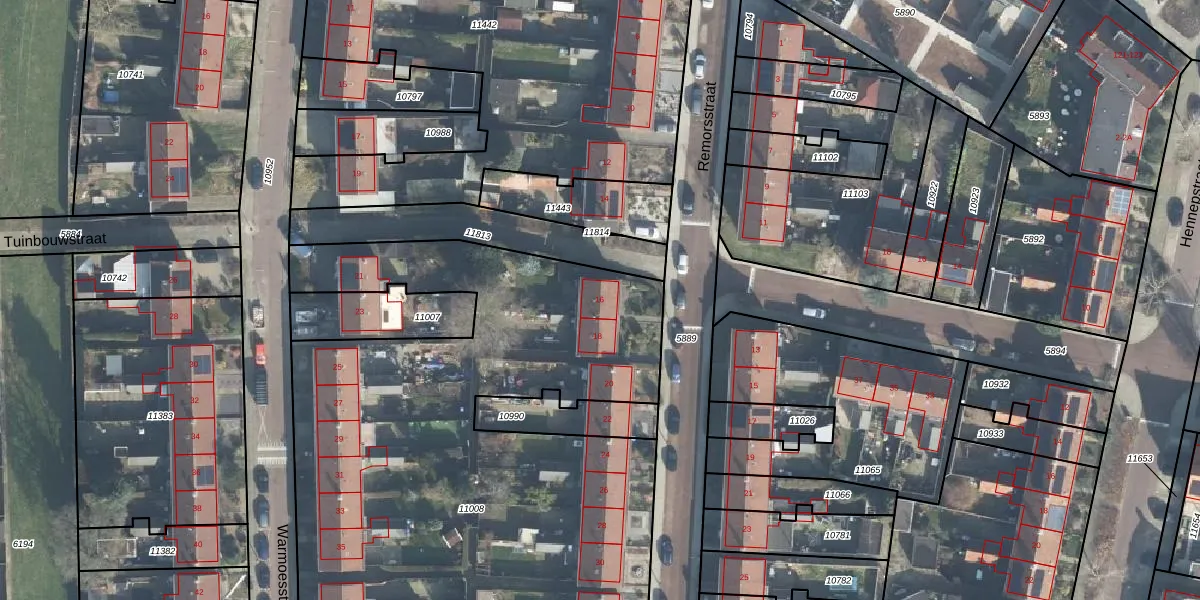 Het perceel waarop Remorsstraat 16 staat heeft een oppervlakte van 4590 m². Dit is een zeer groot perceel. De perceeloppervlakte wordt geregistreerd door het Kadaster. Gedetailleerde informatie over de maten van dit perceel kunt u vinden in het rapport Kadastrale kaart met maatvoering van Remorsstraat 16.