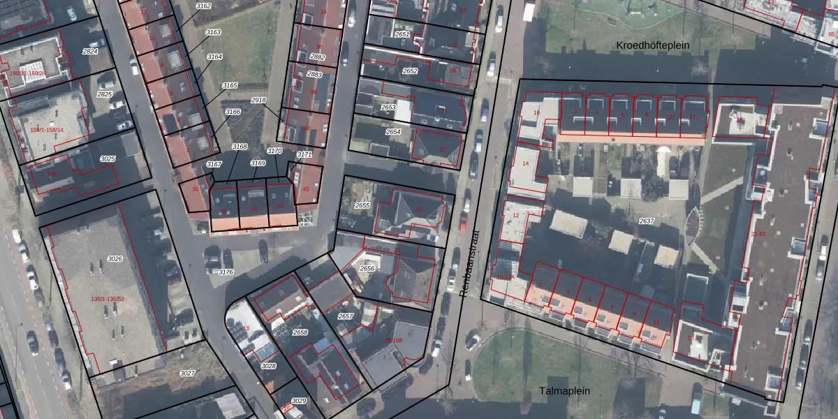 Gebruik de zoekbalk of klik op een perceel voor informatie over de adressen binnen dit perceel.